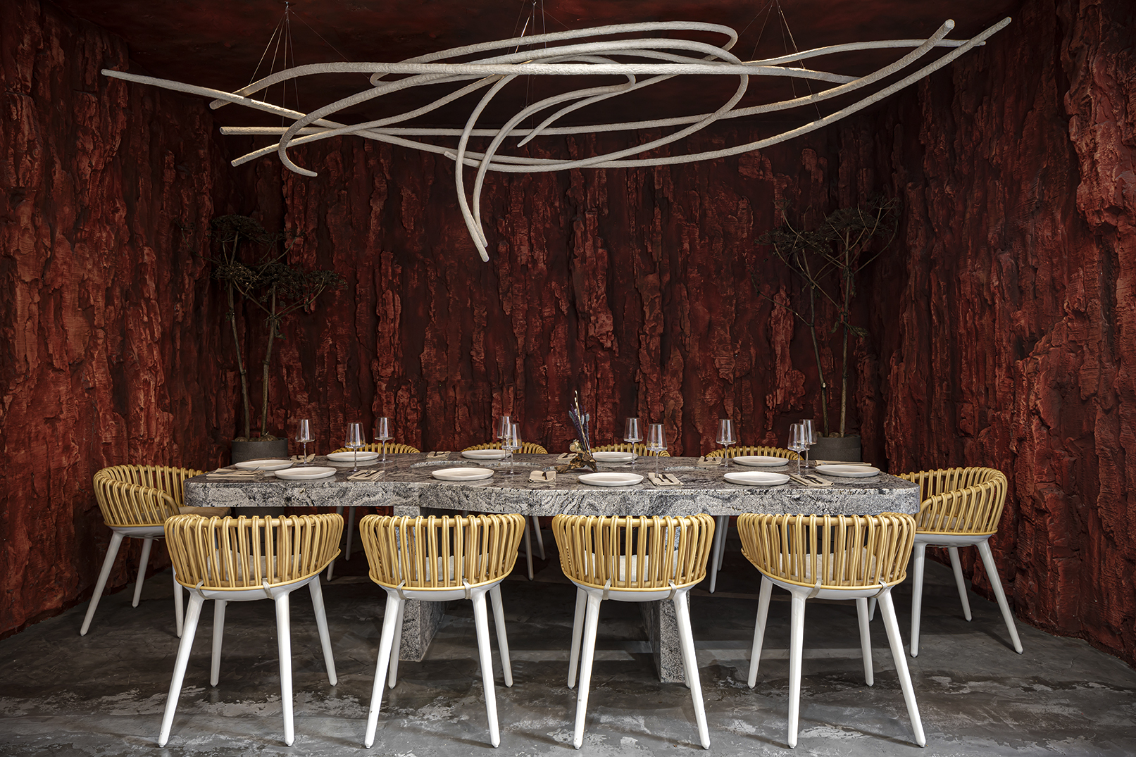Получилось идеальное вечернее место, спроектированное флорентийским бюро b-arch: тонко поставленный свет, отражающийся на поверхности охристых стен и индустриальная терраса с садиком и свечами, которые на нагоняют романтики, а действительно освещают — лица, цветы и пулийскую керамику на столах.